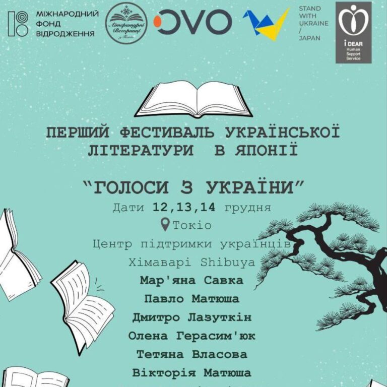 12–14 грудня у столиці Японії пройде перший фестиваль української літератури «Голоси з України», який об’єднає українських письменників, поетів та видавців.