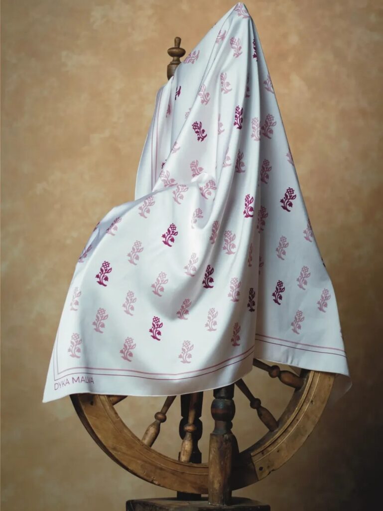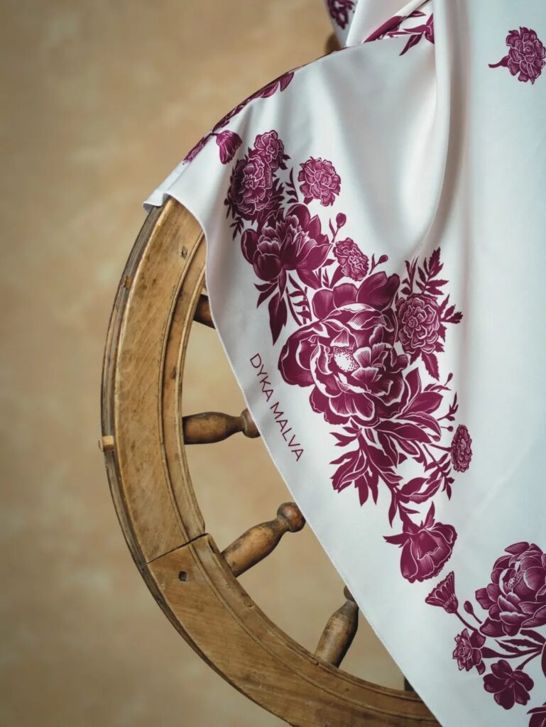 Бренд DYKA MALVA народився з тендітного бажання вплести традиційну естетику у ритм сучасного життя. Квіткові мотиви та витончені елементи української вибійки, підпорядковані класичній симетрії, стають тут універсальною графічною мовою. Ми дбайливо досліджуємо старовинні зразки, щоб віднайти ту саму опору для створення авторських орнаментів. Друкована мануфактурна хустка стала невід’ємною частиною жіночого побуту ще наприкінці XIX століття. Сьогодні ми продовжуємо цю історію, використовуючи ліцензійні фарби та бездоганний друк на новітньому обладнанні. Основою для виробів став шовк Armani — невагома та ніжна тканина, обрана провідними брендами за її шовковисту делікатність. Так у DYKA MALVA зустрічаються технології майбутнього та мінімалізм сьогодення, щоб відродити традиційний дух класичної української хустки. Це не просто аксесуар — це тихий маніфест ідентичності у кожному вашому образі. КАМО медіа поспілкувались із засновницею бренду Валентиною Пелих.