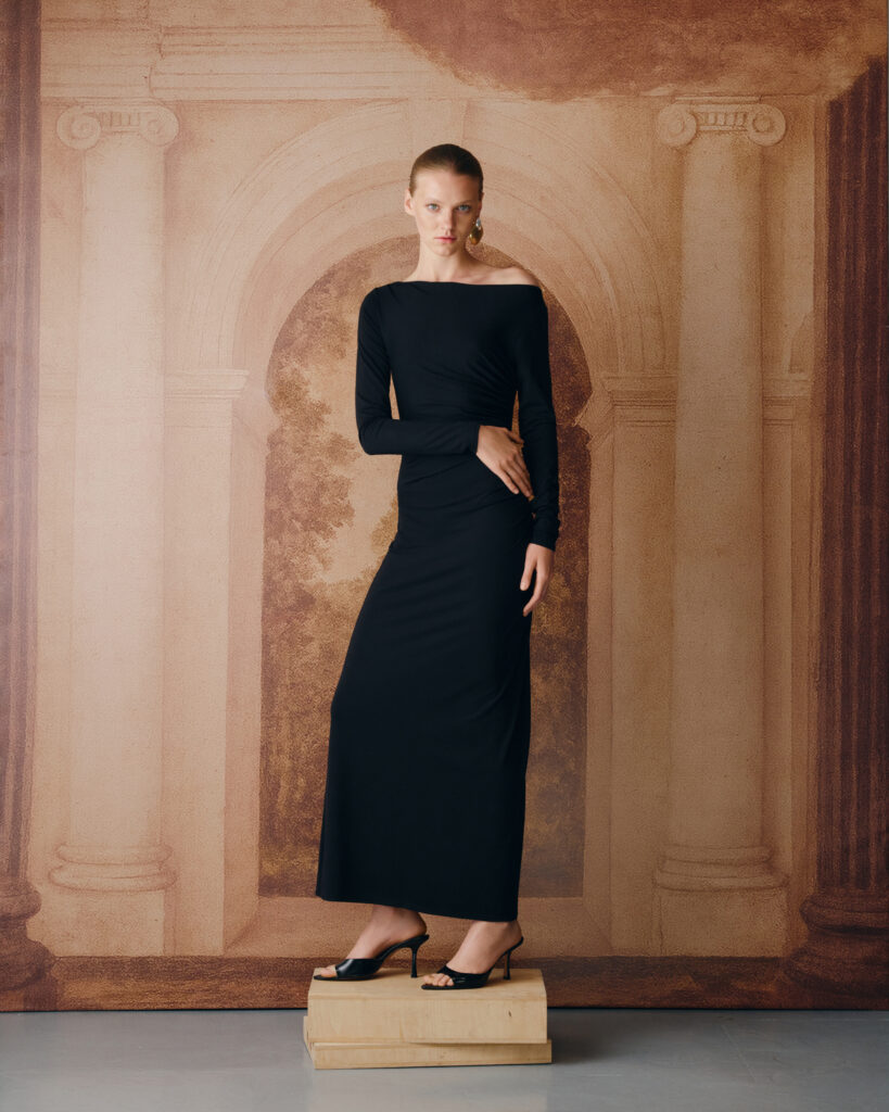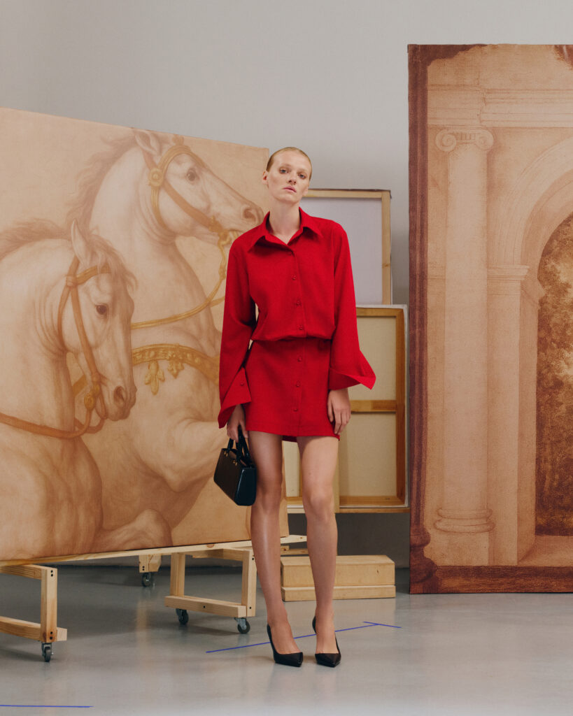 Бренд зазначає, осінь у NESSA — це Париж 70-х: вузькі вулички, аромат кави, червоні відтінки помади на білому фарфорі. Саме з цього настрою народилася колекція Équilibre, у якій бренд продовжує досліджувати концепцію effortless womanhood — жіночності без зусиль.