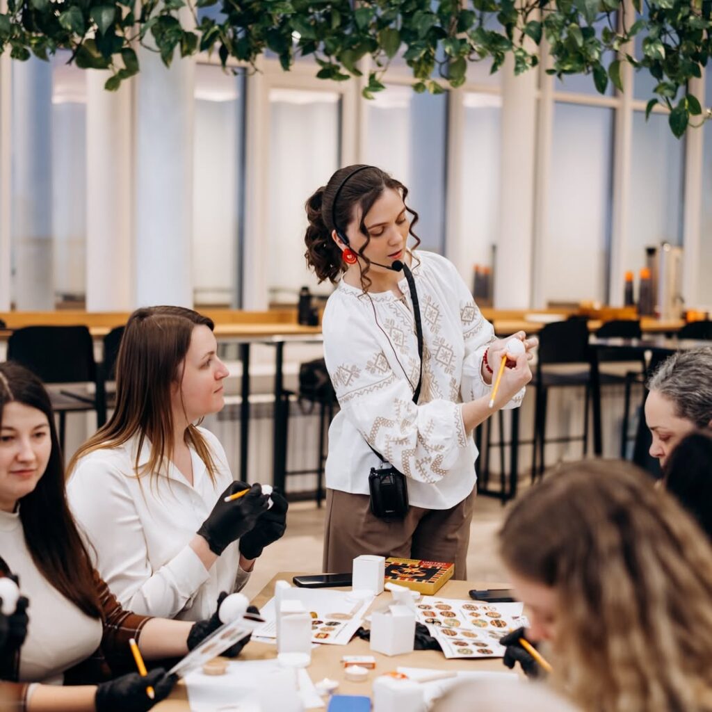 Я впевнена, що доношу це настільки щиро, що вони, йдучи додому, вже в дорозі телефонують рідним і розповідають, чого навчилися. А маючи писачок і вже отримані знання про кольори, вони можуть прийти і навчити свою сім’ю. Це дуже цінно. Рідше приходять з дітьми, але коли приходять — це ще важливіше. Дитина бачить, що дорослі в захваті, і починає розуміти: українська традиція — це дійсно щось круте і важливе, це частина нашого національного коду.