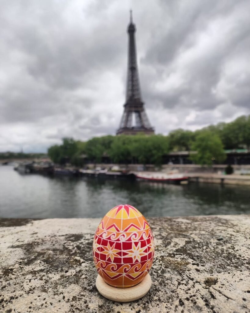 Насправді я частіше не продаю свої роботи. Якщо їх і замовляють, то це близькі мені люди або ті, хто по-справжньому цінує ручну роботу — таких у мене, на щастя, багато. Писанка, яка поїхала в Париж — це замовлення моєї колеги. В неї там проживає донька, і чоловік доньки просто в захваті від української культури. Він замовив роботу, дуже схожу на ту, що я тримаю зараз, тільки з додаванням помаранчевого кольору.
