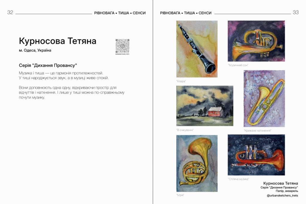 Проєкт проходить у Sveta Gallery та зібрав учасників з України, Польщі, Франції, Німеччини й Італії. Кожен представив по шість мініатюр про рівновагу, тишу й особисті переживання війни та повсякдення. Частину коштів від продажу робіт польських художників та урбан-скетчерки Marianne Heregde передадуть на допомогу Україні.