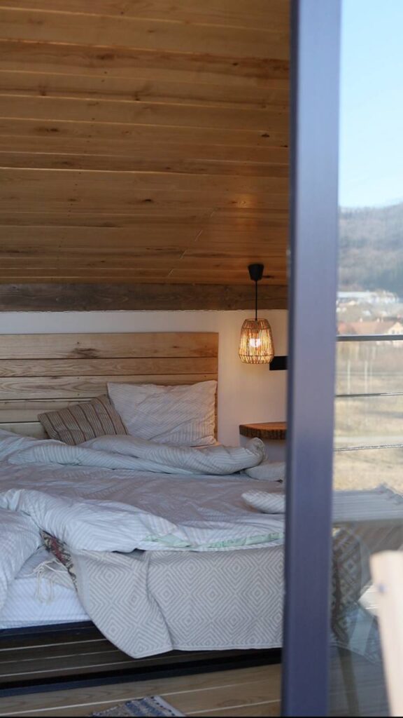 Загалом, чоловік хотів мати свій будиночок із гарними краєвидами на гори. У мене теж завжди було таке бажання, бо я багато мандрувала зі спортом і бачила подібний формат відпочинку — сучасні будиночки з панорамними вікнами, щоб було красиво й затишно. Ми просто зійшлися на одній ідеї. Ще до війни багато думали про це, планували. Навіть землю отримали до повномасштабного вторгнення. А остаточним поштовхом стало те, що ми переїхали в село й почали тут жити та займатися своєю справою”.